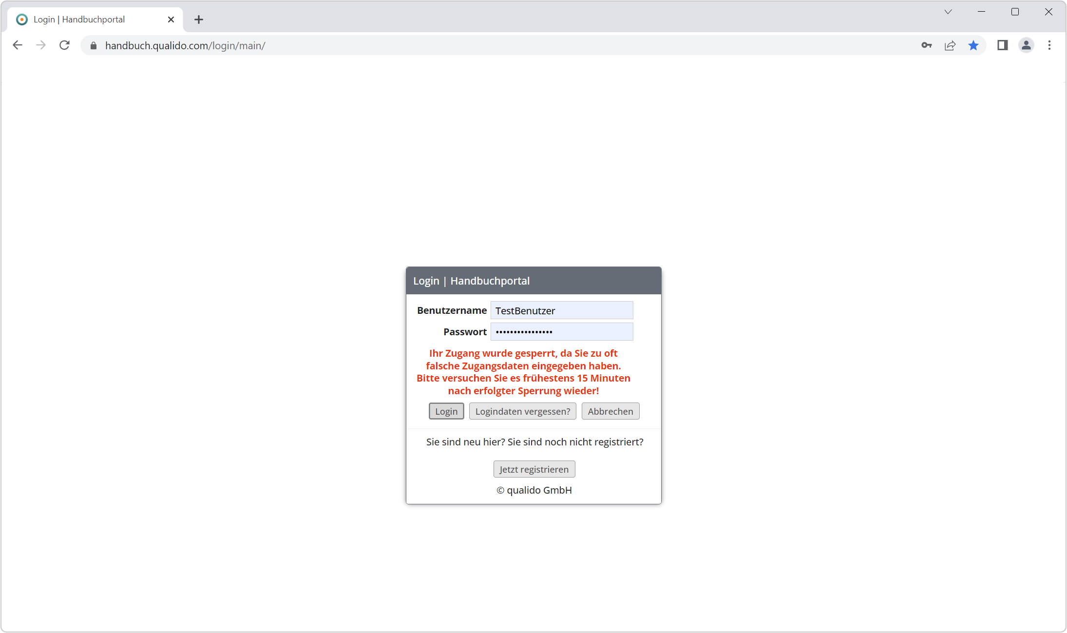 Ein Kontozugang wird durch zu häufige, falsche Passworteingabe gesperrt: